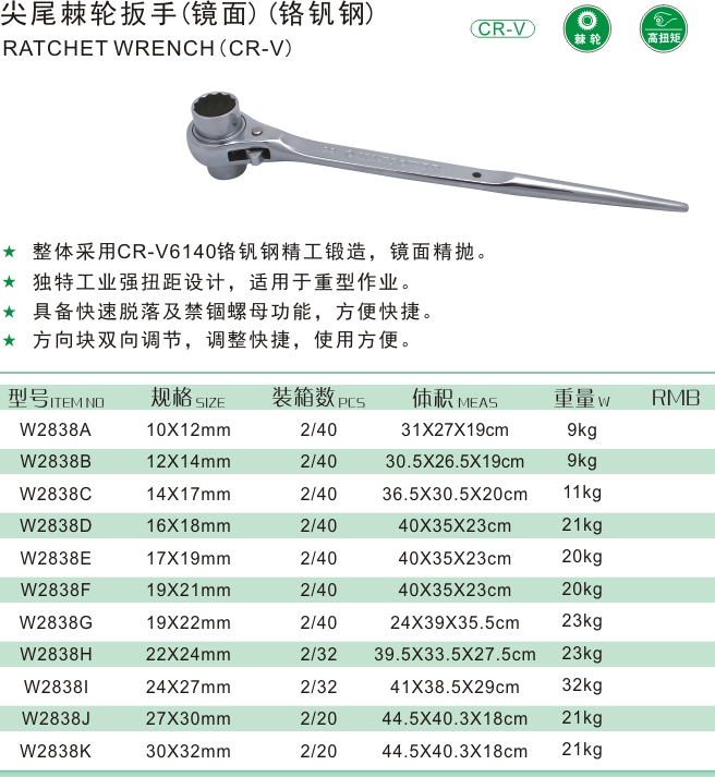 尖尾棘輪扳手(鏡面)(鉻釩鋼)