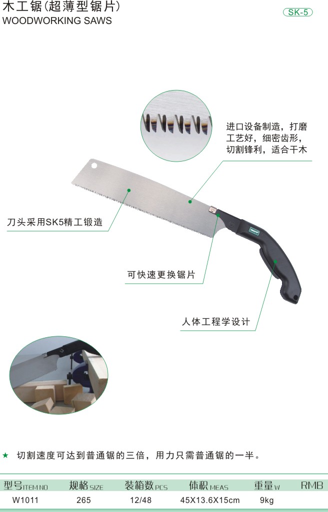 切割速度可達到普通鋸的三倍,用力只需普通鋸的一半。