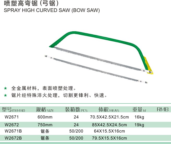 W2671~W2672B <br>噴塑高彎鋸(弓鋸)