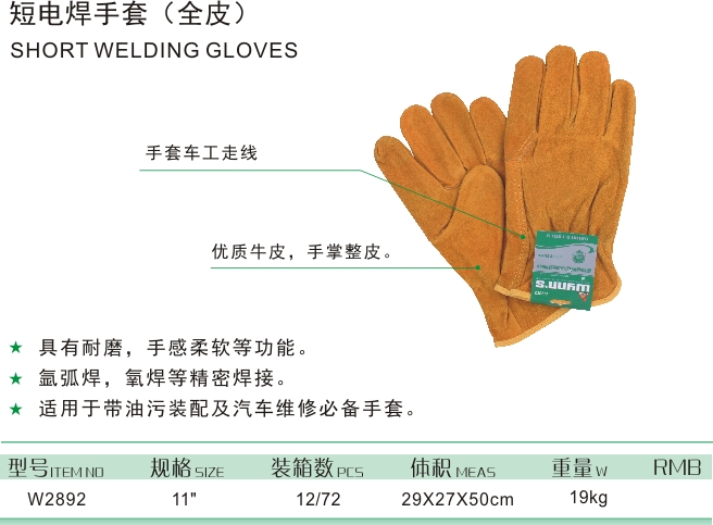 W2892<br>短電焊手套(全皮)