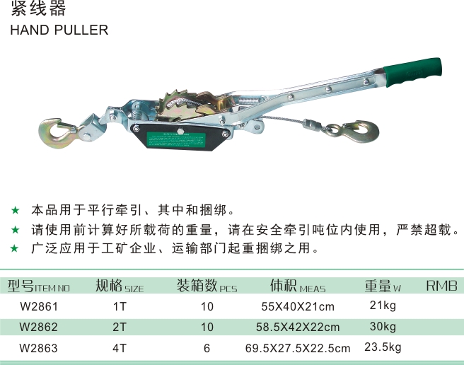 請使用前計算好所載荷的重量,請在安全牽引噸位內使用,嚴禁超載。