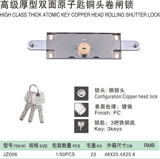 Jz006<br>高級厚型雙面原子匙銅頭卷閘鎖