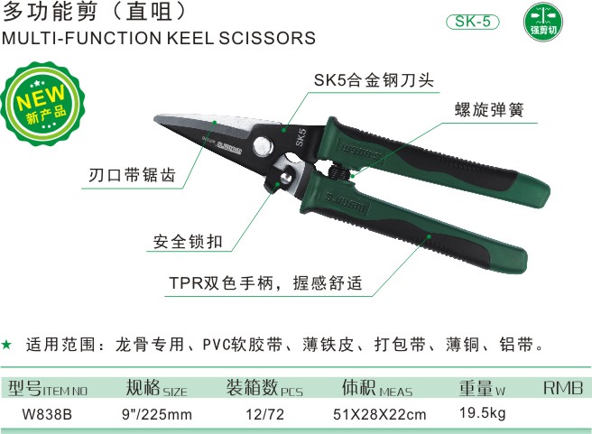 適用范圍:龍骨專用、PVC軟膠帶、薄鐵皮、打包帶、薄銅、鋁帶.