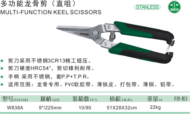 適用范圍:龍骨專用、PVC軟膠帶、薄鐵皮、打包帶、薄銅、鋁帶。