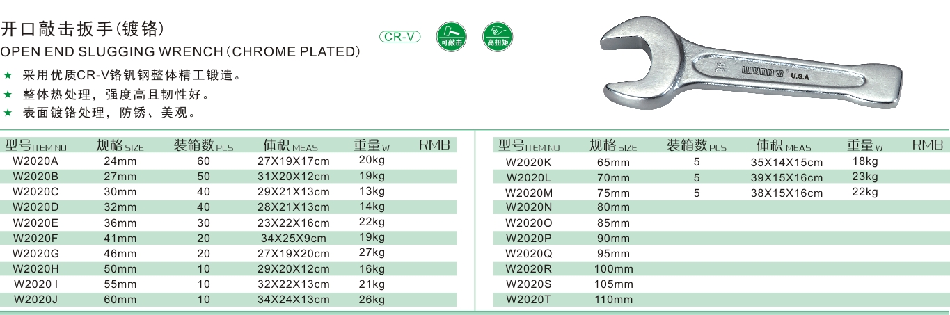 W2020A~W2020T<br>開口敲擊扳手(鍍鉻)