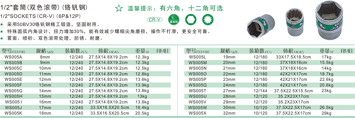 1/2"套筒(雙色滾帶)(鉻釩鋼)