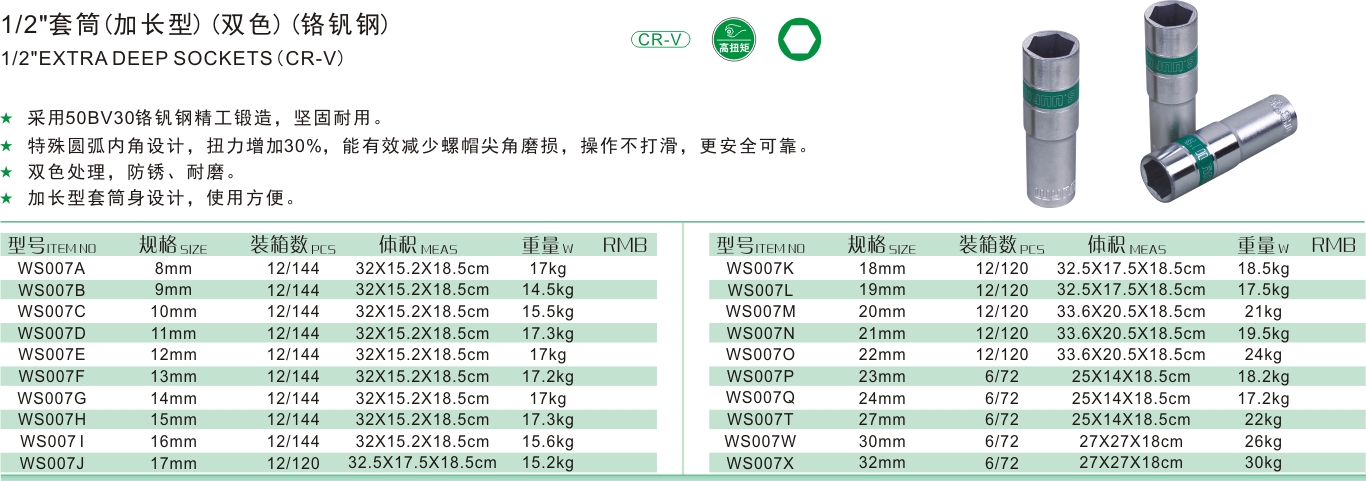 1/2"套筒(加長型)(雙色)(鉻釩鋼)