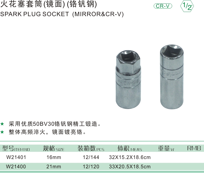 W21401~W21400<br>火花塞套筒(鏡面)(鉻釩鋼)