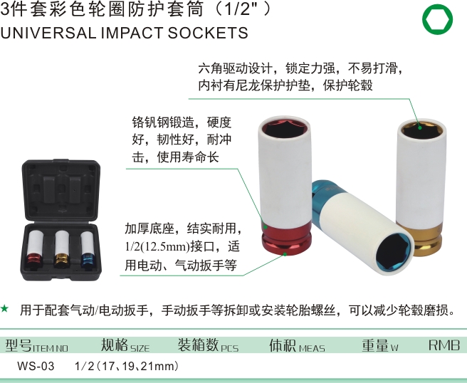 WS-03<br>3件套彩色輪圈防護套筒(1/2" )