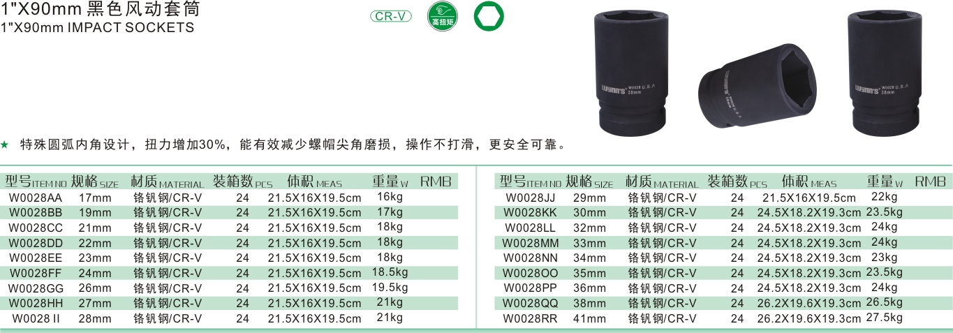 W0028AA~W0028RR<br>1"X90mm 黑色風動套筒