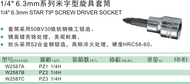 1/4" 6.3mm系列米字型旋具套筒