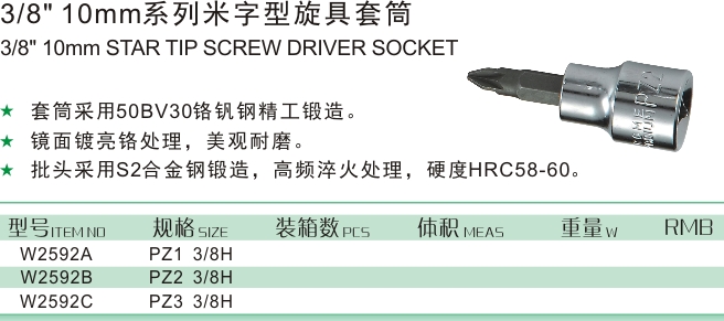 3/8" 10mm系列米字型旋具套筒