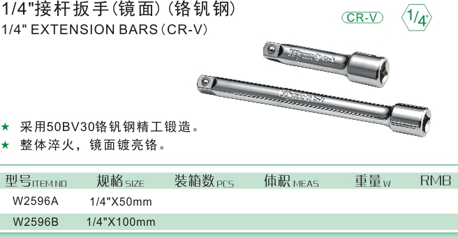 W2596A~W2596B<br>1/4"接桿扳手(鏡面)(鉻釩鋼)