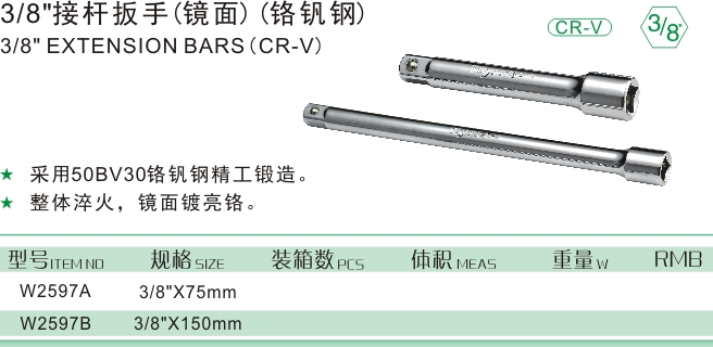 W2597A~W2597B<br>3/8"接桿扳手(鏡面)(鉻釩鋼)