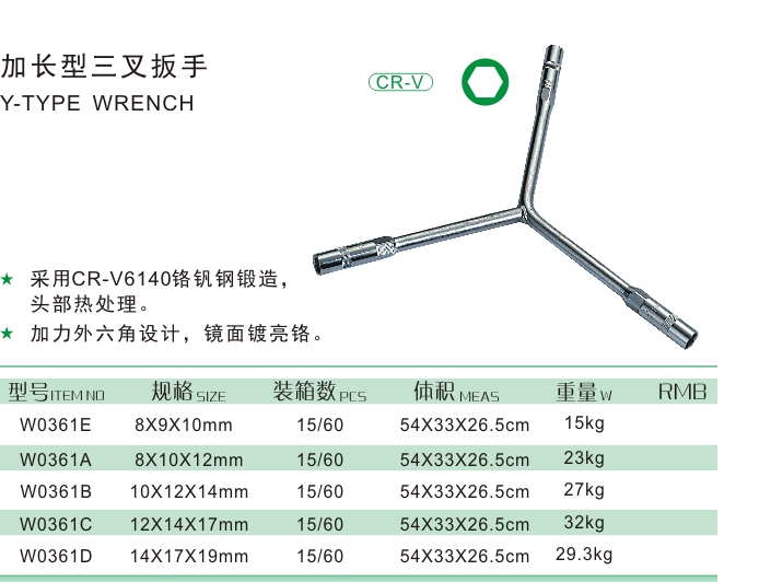 采用CR-V6140鉻釩鋼鍛造,頭部熱處理。