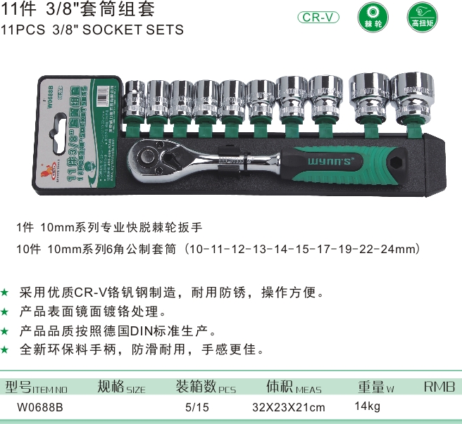 11件 3/8"套筒組套