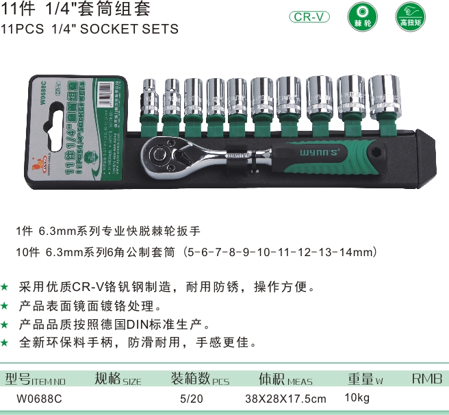 11件 1/4"套筒組套