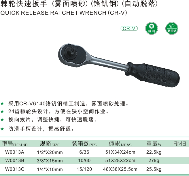 棘輪快速扳手 (霧面噴砂)(鉻釩鋼)(自動脫落)