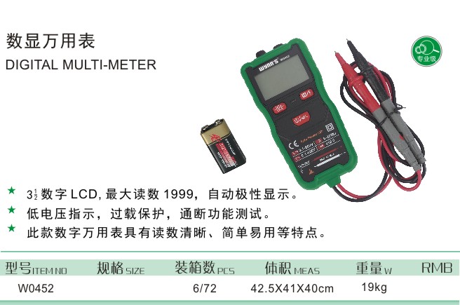 此款數字萬用表具有讀數清晰、簡單易用等特點。