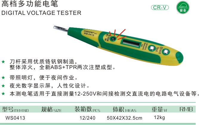 本測電筆適用于直接測量12-250V和間接檢測交直流電的電路電氣設備等。