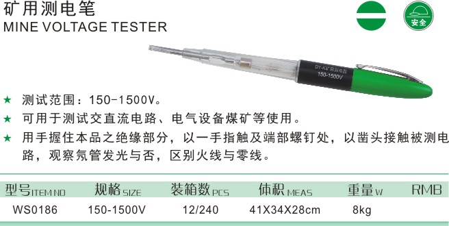 用手握住本品之絕緣部分,以一手指觸及端部螺釘處,以鑿頭接觸被測電路,觀察氖管發光與否,區別火線與零線。