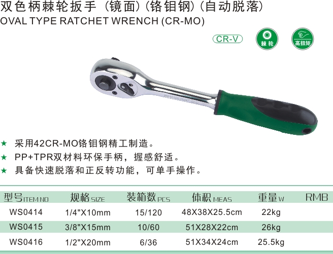 雙色柄棘輪扳手 (鏡面)(鉻鉬鋼)(自動脫落)