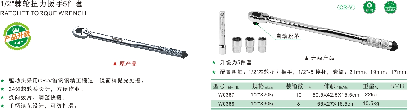 1/2"棘輪扭力扳手5件套